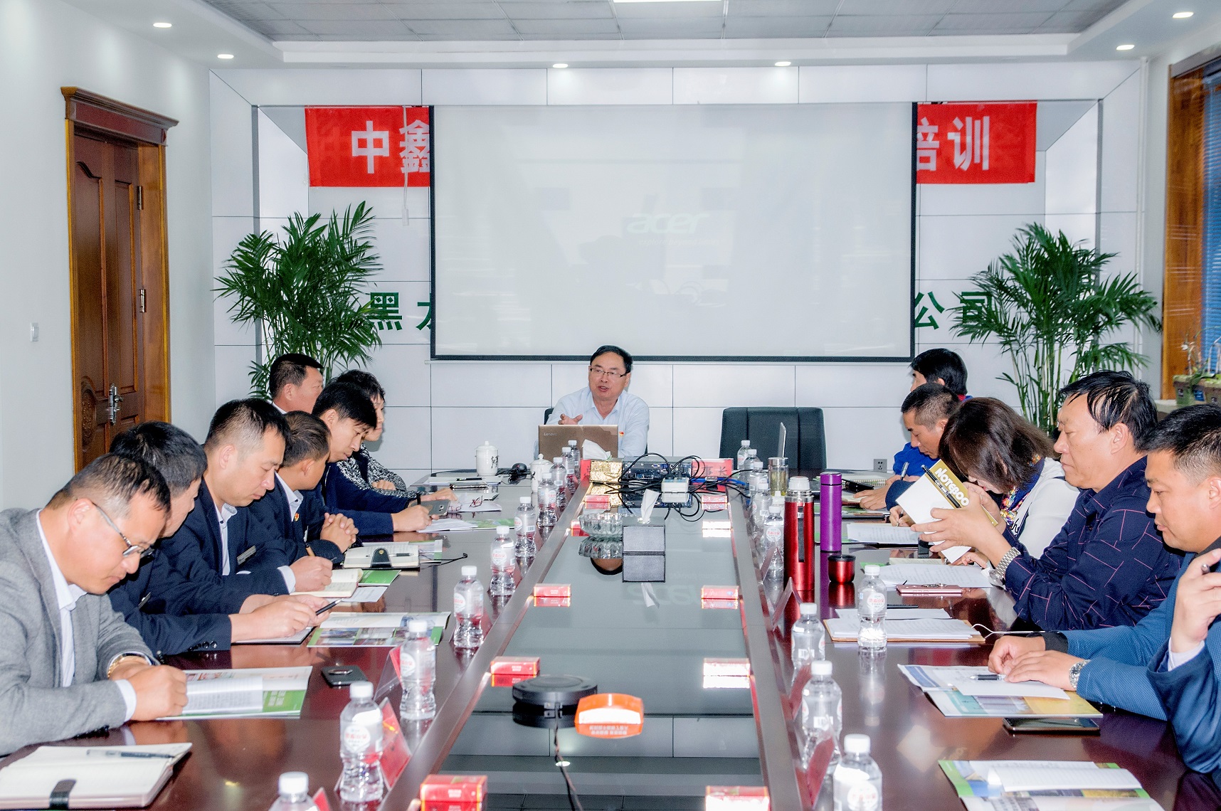 金九銀十,譽滿龍江,糧谷飄香入庫,東北寒潮來襲,凝聚人心聚力,溫暖萬戶千家!2018年10月10日,慶翔集團10月份中層以上干部工作會議在黑龍江中鑫熱電有限責(zé)任公司勝利召開,集團公司總經(jīng)理王國茂和高管成員及慶翔熱電、中鑫熱電、肇源熱電、慶安糧油各子公司主要領(lǐng)導(dǎo)和部門負(fù)責(zé)人共30人參加了會議。本次會議是在東北采暖開始和40MW新建機組并網(wǎng)發(fā)電前沖刺的關(guān)鍵節(jié)點上召開的,是溝通融合各子公司、凝聚集團干部職工的關(guān)鍵盛會。