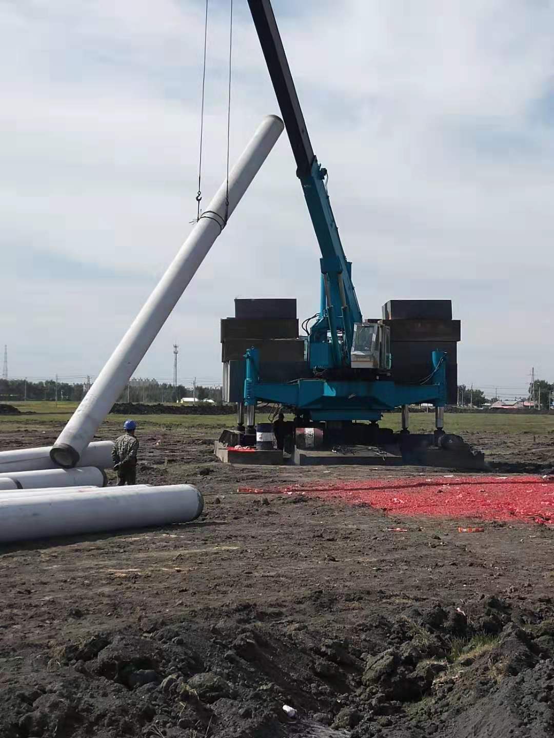 9點(diǎn)30分,在肇源項(xiàng)目現(xiàn)場(chǎng),隨著項(xiàng)目經(jīng)理宋宇一聲令下,打樁機(jī)上懸著的4掛“大地紅”及地上擺放的4座禮炮被點(diǎn)燃,現(xiàn)場(chǎng)瞬間充滿了震耳欲聾的鞭炮聲。在司機(jī)操控下,打樁機(jī)抓起一根又粗又長(zhǎng)的水泥樁,穩(wěn)穩(wěn)地樹(shù)立在預(yù)先設(shè)定好的地面上,開(kāi)始利用液壓原理,將水泥樁打進(jìn)泥土中。據(jù)介紹,今天打入深度為25米。這些水泥樁將作為廠房根基,見(jiàn)證80MW熱電聯(lián)產(chǎn)機(jī)組順利并網(wǎng),推動(dòng)肇源熱電乃至慶翔集團(tuán)闊步向前。